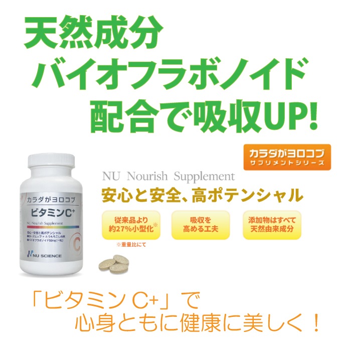 ビタミンCはバイオフラボノイドを1粒あたり50mg含有しております。バイオフラボノイドはレモンの皮から取られた天然成分で、ビタミンCの体への吸収を高める成分です。