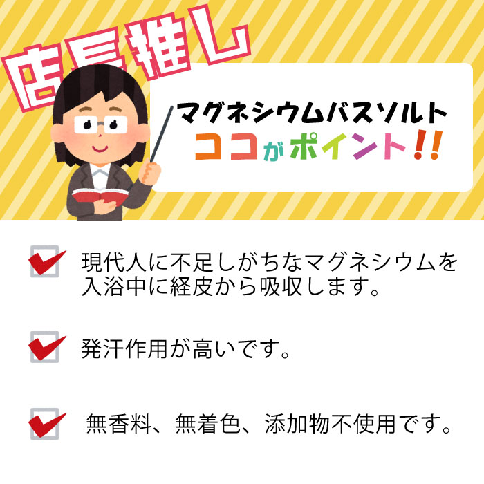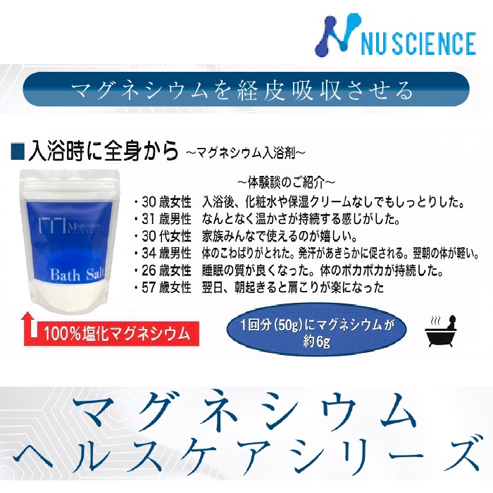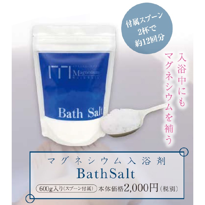 【製品情報】一日の疲れを癒す入浴中にもマグネシウムをバスソルトで補いましょう。
