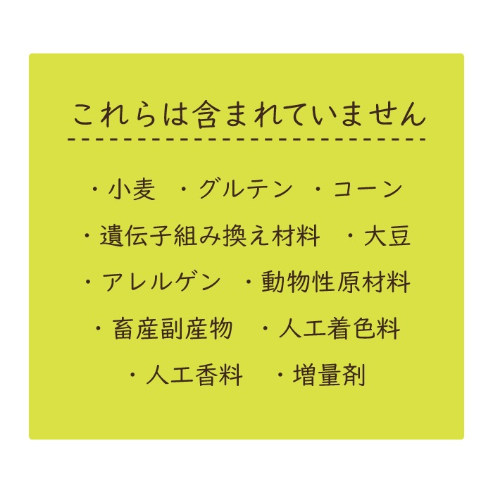 グルテンフリー、人口着色料・人口香料無添加。