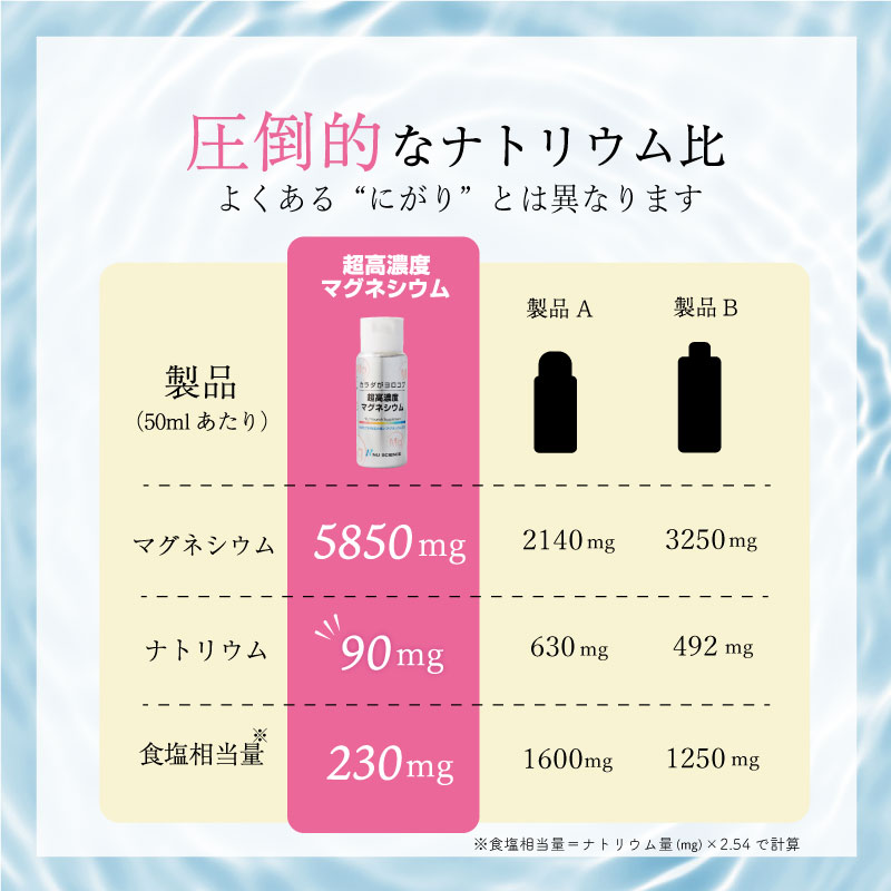 「マグネシウム:ナトリウム=73:1」の超高濃度を実現。