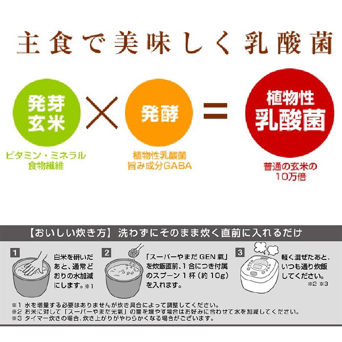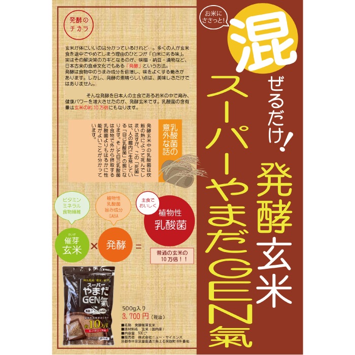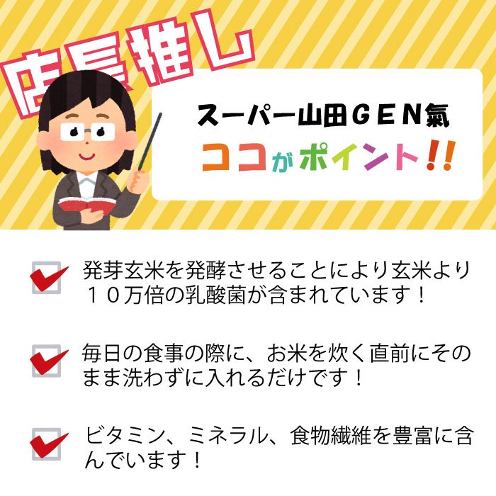 スーパやまだGEN氣は『独自の発酵技術を使うことで玄米の中に眠っているおいしさを引き出し、さらに乳酸菌を増量させることにも成功』しました。