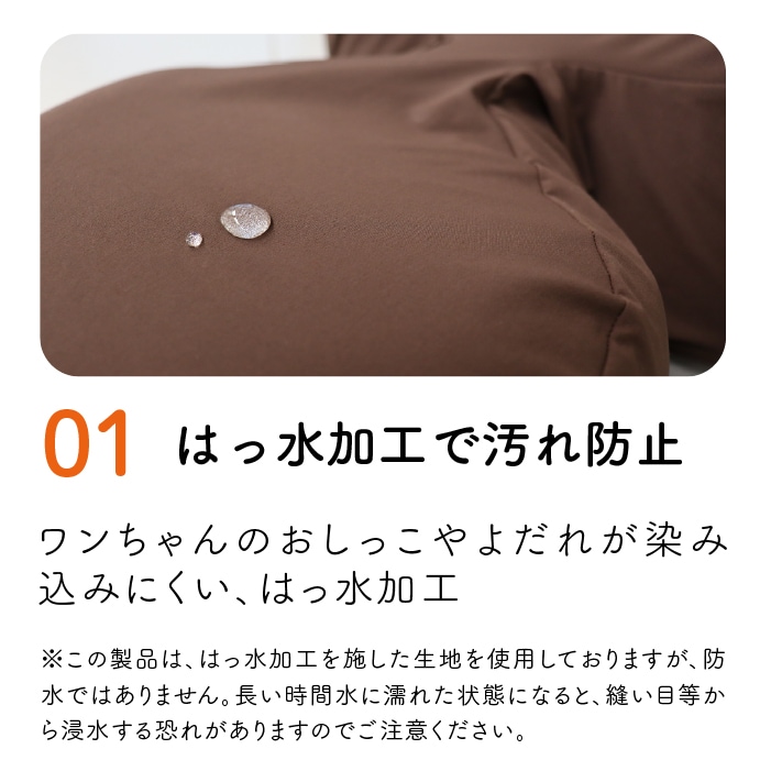 ワンちゃんのおしっこやよだれが 染み込みにくい、はっ水加工。