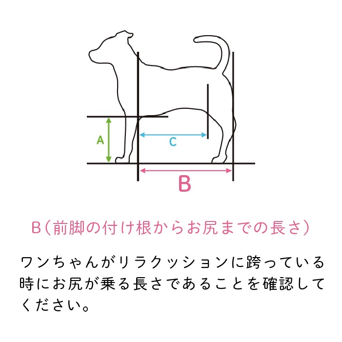 クッションのサイド部の前方に前脚を、後方に後脚になるように犬をのせてください。