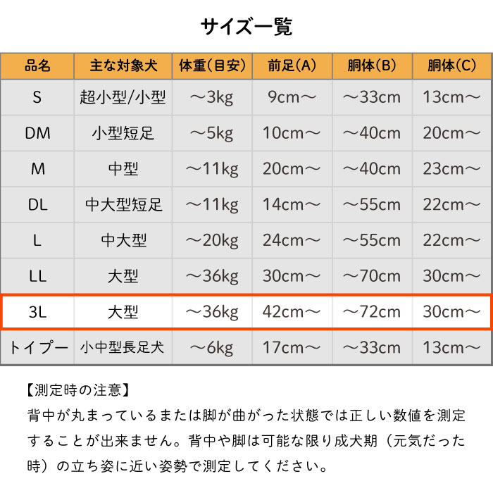 ※3Lのみ頭部スペースが小さいつくりになっています。