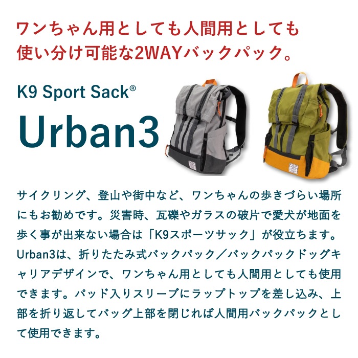 K9 Sport Sack Urban3 サイズXS~L | 小型・中型犬対応2WAYキャリー