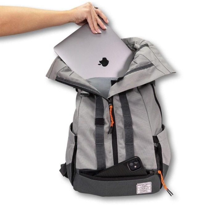 パッド入りスリーブにラップトップを差し込み、上部を折り返してバッグ上部を閉じれば人間用バックパックとして使用できます。