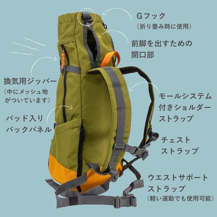 普段の移動だけでなく、人混みなどワンちゃんの歩きづらい場所や、サイクリングや登山など両手がふさがっているシーン、旅行などでカメラを撮りたいシーンにおすすめです!
