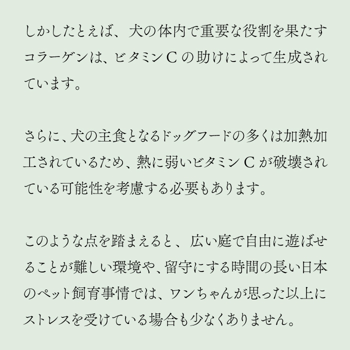 ※食物繊維を豊富に含む原料を使用している為、与え始めは軟便になるケースがございますので、少量ずつから規定量まで徐々に増やしていただく事をおすすめします。(特に胃腸の弱い子)