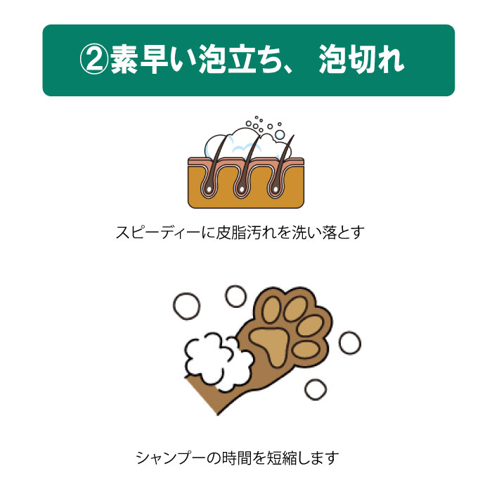 スピーディーに皮脂汚れを洗い落とし、シャンプーの時間を短縮します