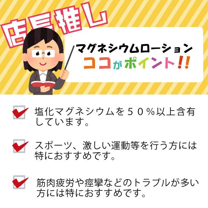 スポーツ後のマッサージに使用することで、速やかにマグネシウムを補うことができます。