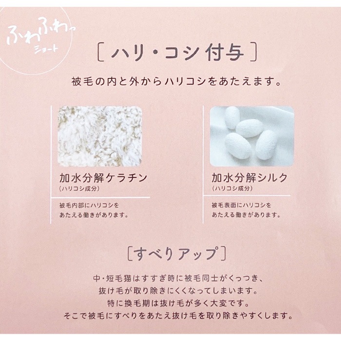 被毛にハリコシをあたえ、ふわふわな仕上がりを実現します。