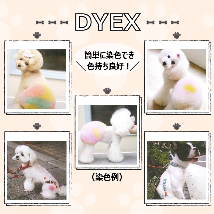 クリームジェルベースを採用していますので塗布しやすく、被毛の根元から毛先まで、ムラなく染めることができます。