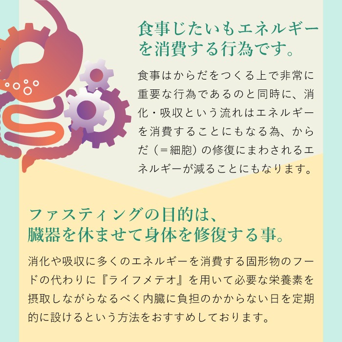 ライフメテオは病中・病後、元気がない時、食欲不振時や、からだの不純物を排除し体質を変換させるファスティング時の代替え栄養素として与えられる多機能サプリメントです。