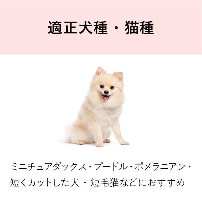ミニチュアダックス・プードル・ポメラニアン・短くカットした犬・短毛猫などにおすすめ