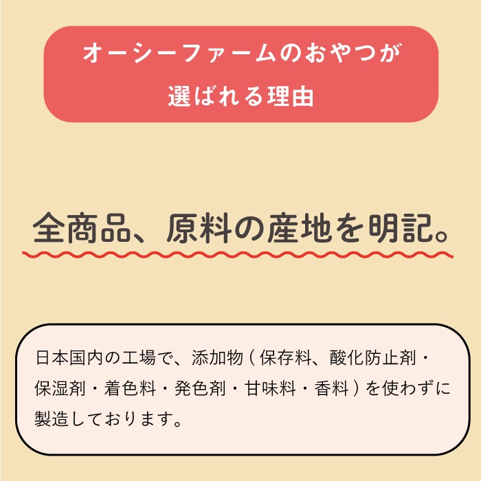 ・保存料、酸化防止剤、保湿剤、着色料、発色剤、甘味料、香料は使用しておりません。