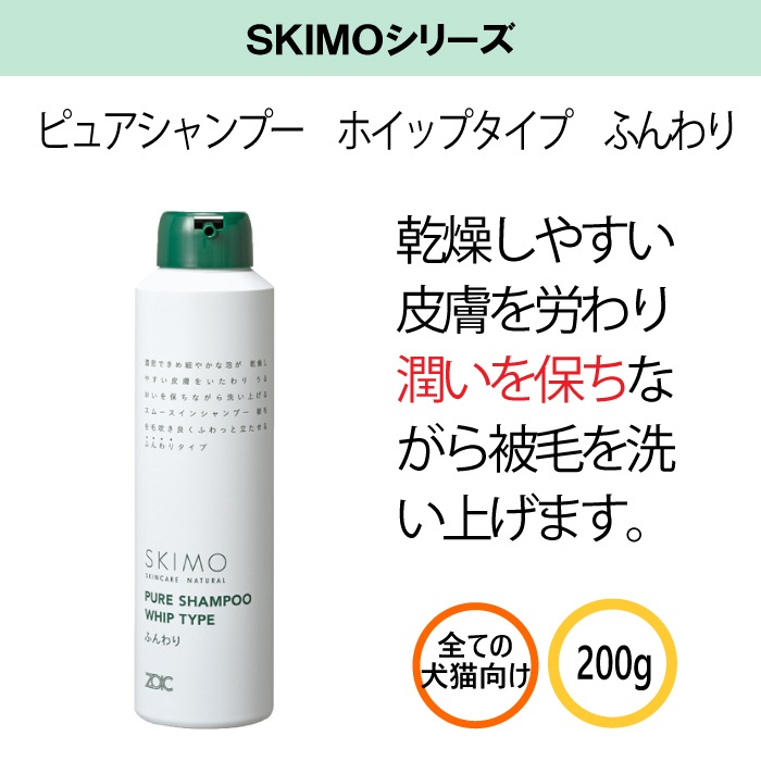 濃密できめ細やかな泡が乾燥しやすい皮膚をいたわりうるおいを保ちながら洗い上げるスムースインシャンプー被毛を毛吹き良くふわっと立たせるふんわりタイプ
