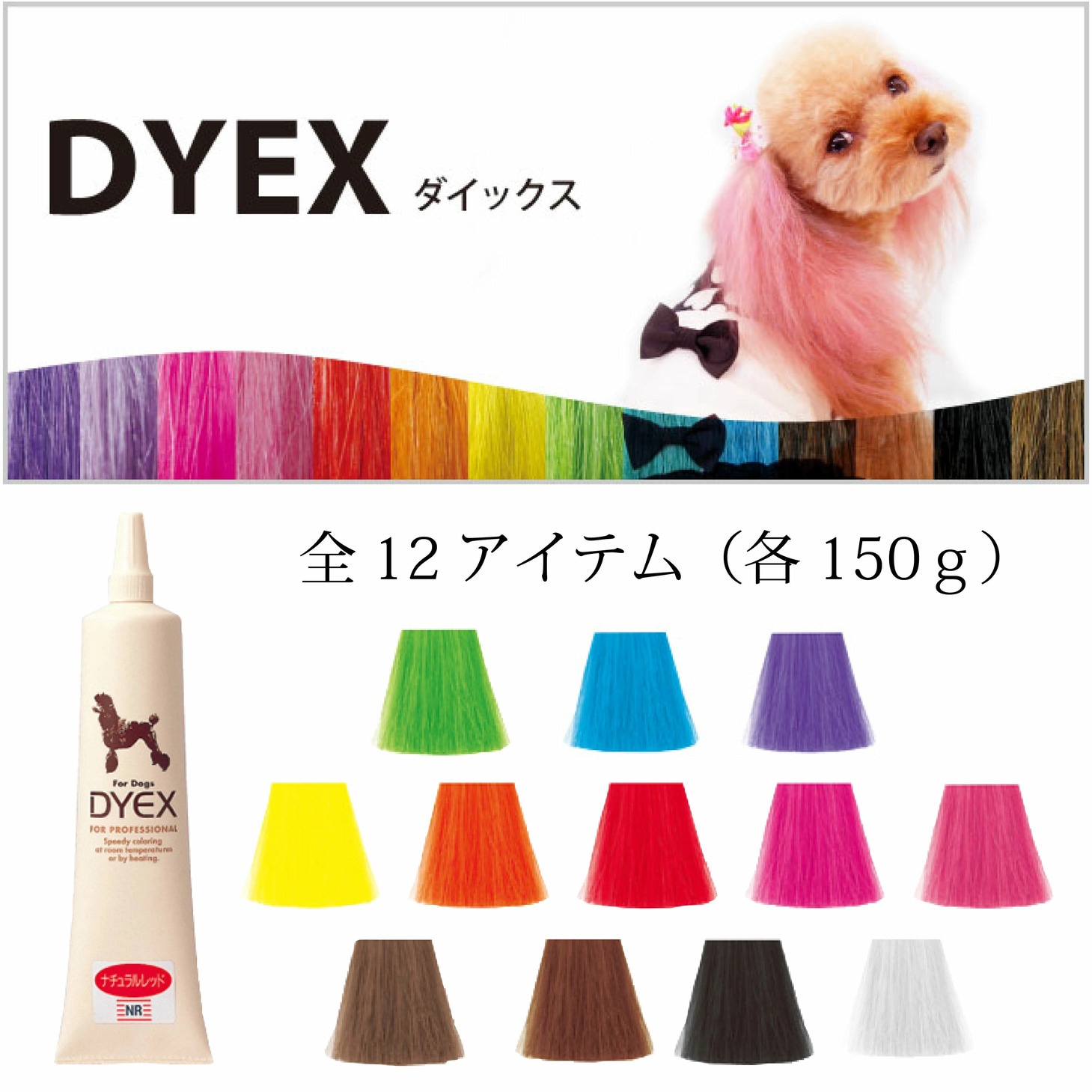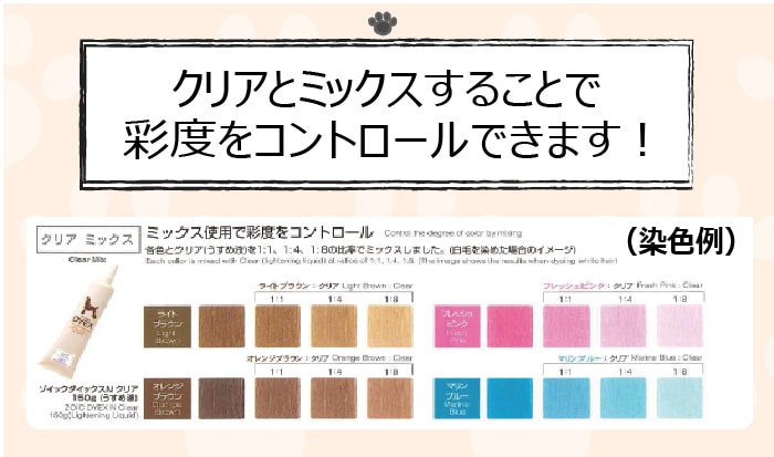 人気のカラフルなカラーに加え、親しみを感じるナチュラルカラー、ミックス使用で彩度をコントロール可能なクリアと豊富なバリエーションがペットの個性を引き出します。