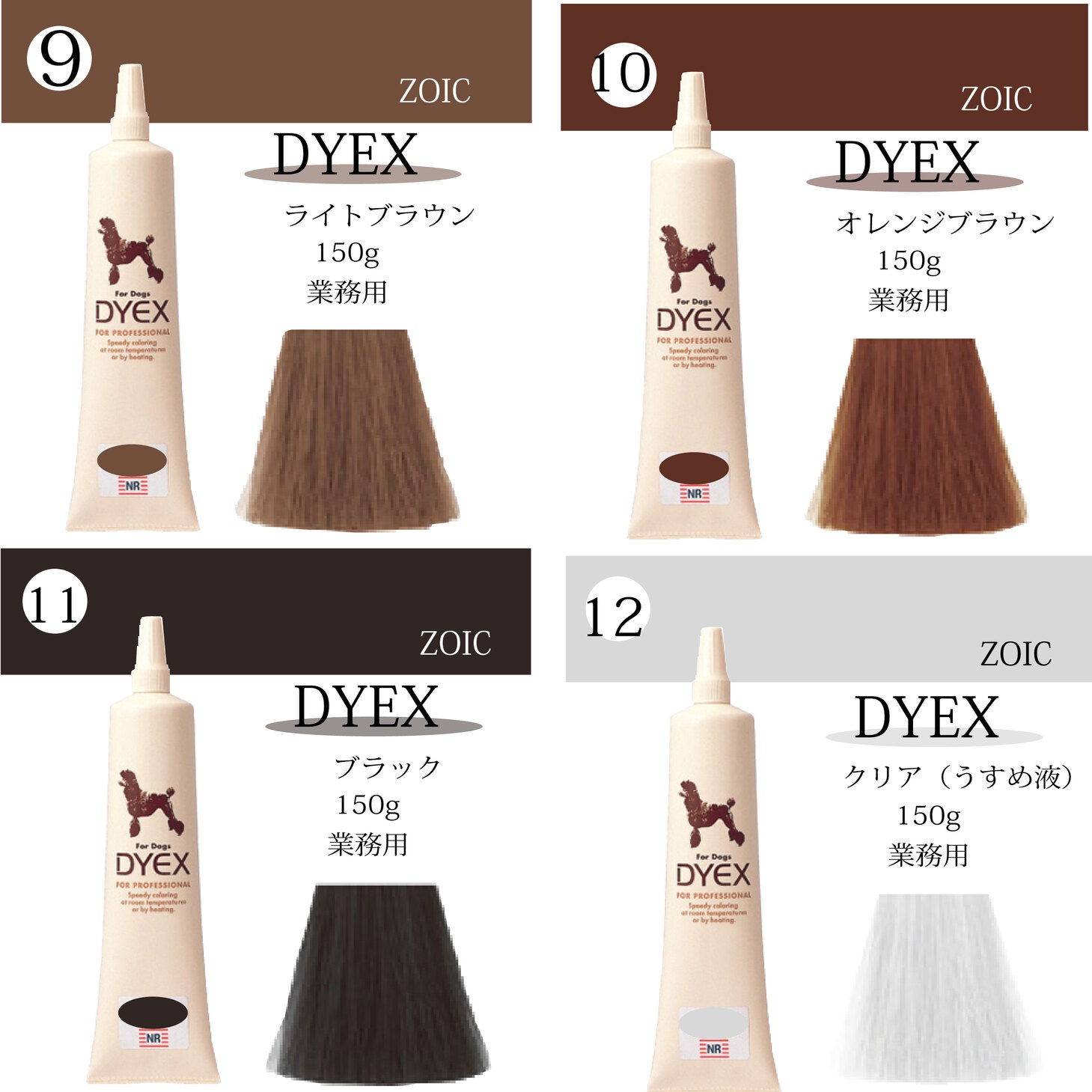 クリームジェルベースを採用していますので塗布しやすく、被毛の根元から毛先まで、ムラなく染めることができます。