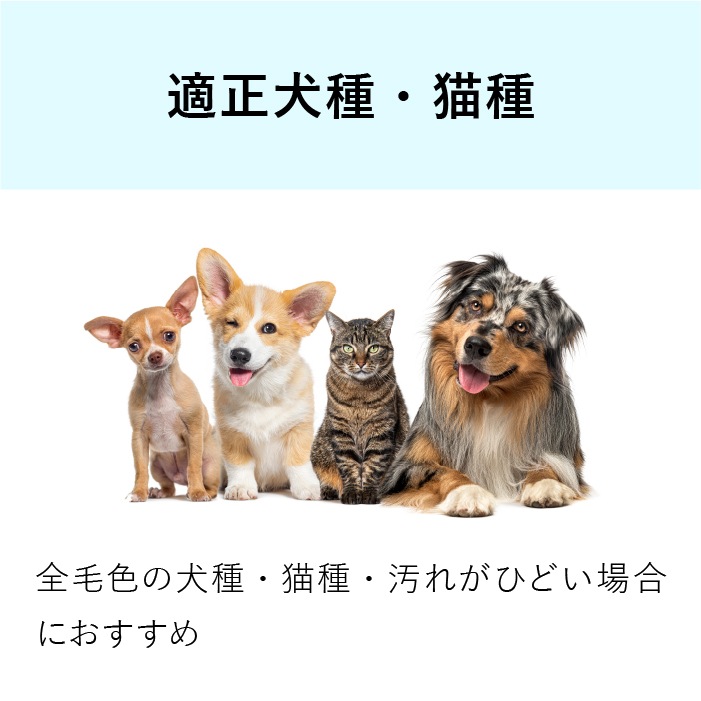 全毛色の犬種・猫種・汚れがひどい場合などにも最適です。