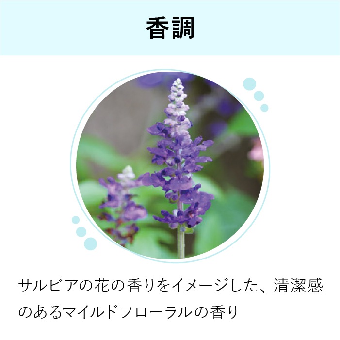 【香調】 サルビアの花の香りをイメージした、清潔感のあるマイルドフローラルの香り