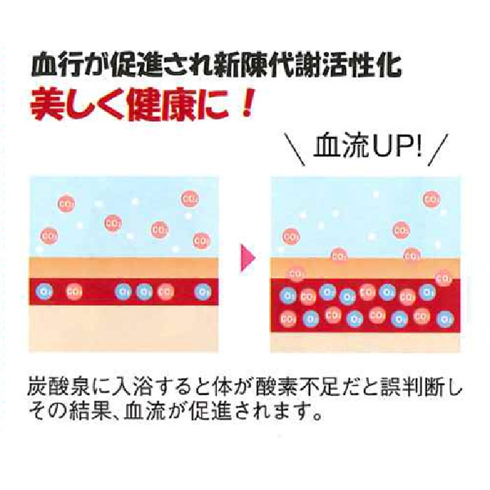 従来品と比べて細かくなった粒子はお湯に溶けやすく、A包とB包が混ざった瞬間に 浴槽全体に炭酸が発生します。
