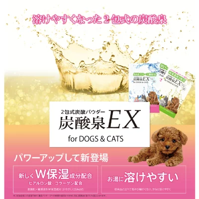 ペットに優しい弱酸性、2包式炭酸パウダー。