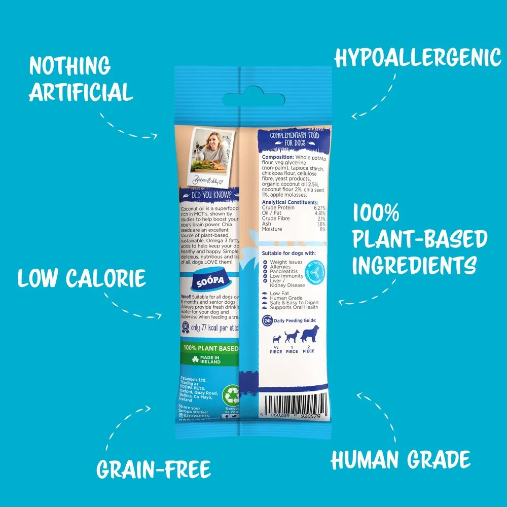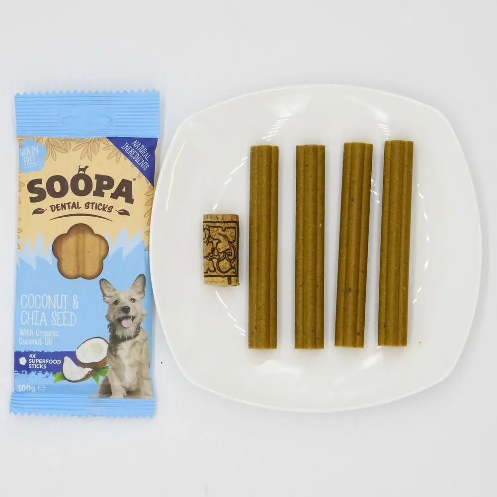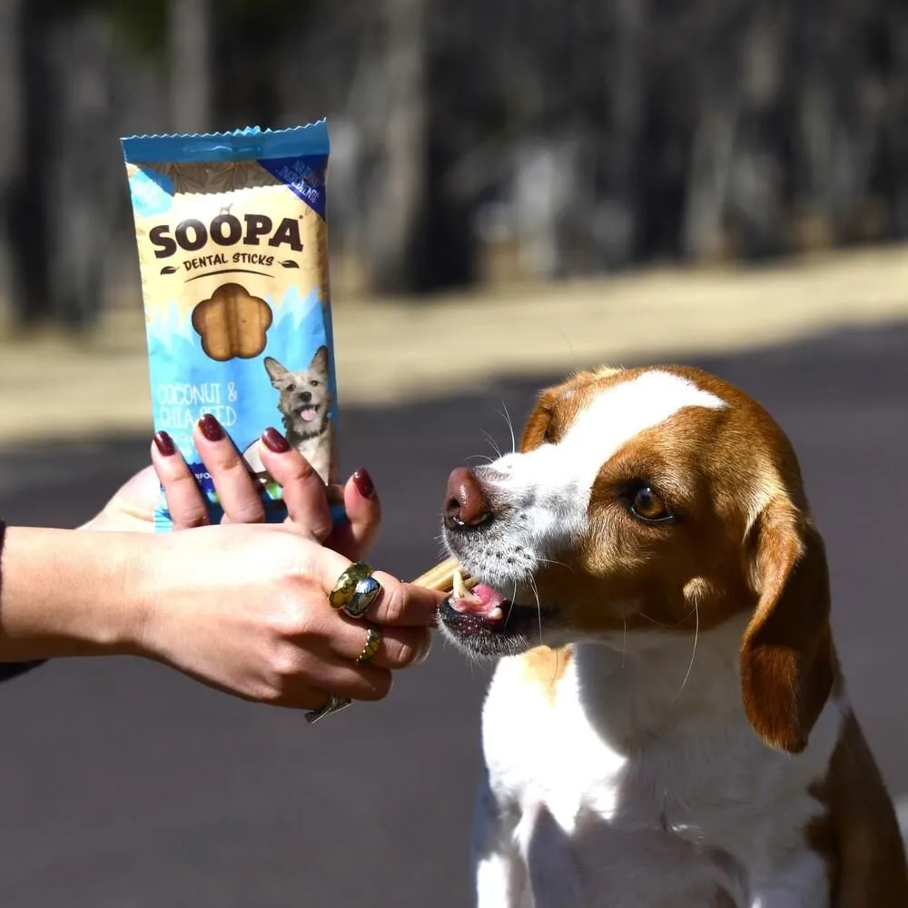 SOOPAデンタルスティックは、噛むことが大好きな愛犬のための穀物不使用、グレインフリースナックです。